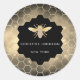Pegatina Redonda logotipo de abeja de joyas hexagonal en negro