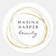 Los elegantes pegatinas en monograma cuentan con un logo de círculo abstracto en oro falso, rodeando su nombre y/o nombre de negocio en escritura moderna de caligrafía y letras en bloques en un fondo blanco. NOTA: NO HAY RELIEVE METALIZADO DORADO SOBRE ESTE PRODUCTO. El efecto oro se crea utilizando sutiles variaciones de color que imitan el aspecto del Relieve metalizado.
