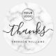 Elegante y de moda gracias pegatinas con un fondo de mármol blanco y su logo personalizado, foto u otra imagen.