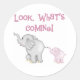 Pegatina Redonda Los elefantes rosas ven lo que viene