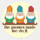 Pegatina Redonda Los Gnomes Me Hicieron Hacerlo
