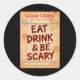 Pegatina Redonda Los Huéspedes De Halloween Comen Bebida Y Tengan M