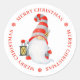 Añade tu propio toque especial a este bonito diseño personalizado con un adorable ilustracion de un gnomo Navidad sosteniendo una linterna y las palabras "Feliz Navidad" con copos de nieve.