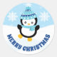Pegatina Redonda Los niños pequeños Gorras azules Pingüino Feliz Na