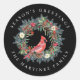 Pegatina Redonda Los saludos del Cardenal Rojo Pine Wreath