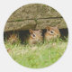 ¡los tres amigos! ¡tres hermanos pequeños y adorablemente dulces se asoman bajo una gran roca, listos para explorar su nuevo mundo!