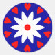 Un atractivo motivo de loto rodeado de corazones amorosos en un fondo azul oscuro.