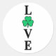 Pegatina Redonda LOVE Clover Shamrock Ireland St Patrick's Fiesta