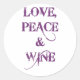 Texto de "Amor, Paz y Vino" con un elegante tipo de letra urbana angustiada, color púrpura