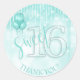 Celebre cualquier evento con este diseño único de plantilla pegatina con hermosas luces de cuerda y delicados globos flotantes sobre un fondo de gradiente, acuarela en tonos azul claro verde azulado a blanco. El llamativo texto 'Sweet Sixteen' es opcional y se puede eliminar para usar la plantilla en otras ocasiones. Busque ID473 para ver otros productos y opciones de color para este diseño.