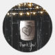 Pegatina Redonda Luces de Cuerda de Madera Negra y Barril Casamient