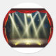 Ilustracion de un escenario de teatro con muchas luces de escenario o focos con luces de pie
