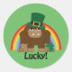 Pegatina Redonda Lucky Bigfoot Leprechaun