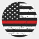 Pegatina Redonda Luminosa línea roja bandera estadounidense bombero