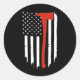 Pegatina Redonda Luminosa línea roja por incendio con bandera estad
