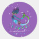 Pegatina Redonda Luna de sirena espiritual zodiaco púrpura