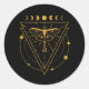 Un diseño místico que exhibe una luna polilla rodeada de formas geométricas, esferas celestes y las fases de la luna. Las polillas Luna son una de las especies de polillas más grandes de Norteamérica, con una envergadura de 3 a 4 pulgadas. Las polillas luna de adultos no comen en absoluto, y por lo tanto sólo tienen bocas vestigias y no tienen sistema digestivo. Su único propósito en la vida es reproducirse. Sólo tienen una semana para hacerlo antes de morir. La luna moth encarna no sólo a la luna llena en su majestuosidad pálida, sino también a la luna nueva en su oscuridad y su potencial no revelado.