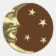 Pegatina Redonda Luna y estrellas Art Deco - Marrón chocolate y oro