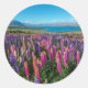 Pegatina Redonda Lupines rusos en el lago Tekapo | Nueva Zelanda