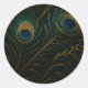 Pegatina Redonda Luxurious Peacock Feathers Golden Teal Pattern