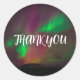Gracias, auroras boreales, calcomanías de bodas de Aurora Borealis. Cielo nocturno, estrellas, árboles pegatinas redondos clásicos. Personalice sus nombres y la fecha del Boda.