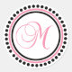 Pegatina Redonda M Monograma (Círculo de puntos rosado claro/negro)