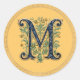 Pegatina Redonda M monograma flor de oro azul