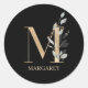 Letra M monograma floral. Letra M en textura marrón dorada acentuada con hojas de compuestos de acuarela verde, flores y salpicaduras de oro fundido. Personalizado con el nombre en el tipo de letra coincidente.