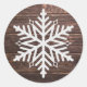 Pegatina Redonda Madera angustiada y copo de nieve blanco Navidad