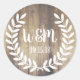 Sella tus cartas con un toque de encanto campestre. Estos laureles rústicos blancos de granja están recortados sobre un fondo de tablones de madera de granero ligeros. Personaliza el texto de las iniciales de la pareja para un look verdaderamente personalizado.