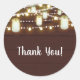 Pegatina Redonda Madera marrón y luces de cadena País Fiesta Rústic