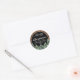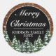 Pegatina Redonda Madera nevada negra y pino forestal navidad
