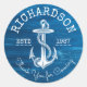 Pegatina Redonda Madera pintada de azul de antro náutico monogramo