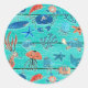 Pegatina Redonda Madera rústica azul turquesa y amigos caprichosos