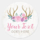 Pegatina Redonda Madera Rústica y Acuarela Floral Cuerno de Ciervo