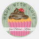 Pegatina Redonda Madera Verde Rústica Hecha Con Amo Pastel