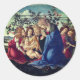 Pegatina Redonda Madonna adorando al niño con cinco ángeles