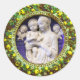 PEGATINA REDONDA MADONNA CON HIJO Y ÁNGELES CORONA FLORAL