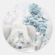 Pegatina Redonda Madre de oso polar cansada con bebés
