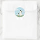 Pegatina Redonda Madre e hijo en un prado floreciente