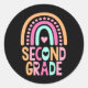 Pegatina Redonda Maestra de Chicas arcoiris de segundo grado