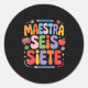 Pegatina Redonda Maestra Seis Siete Teacher Fun School Kids
