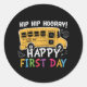 Pegatina Redonda Maestros de primer grado vuelven al autobús escola