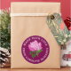 El texto clásico del serif rodea un ilustracion antiguo de una flor tradicional de horangea rosa en este bonito, estilo grandioso milenario, magenta profundo, etiqueta de pegatina de regalo. Personalice el texto para compartir un nombre de negocio o información personal en sus productos hechos a mano o como una forma elegante de dar regalos hechos con amor a sus amigos y familia.