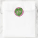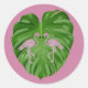 Pegatina Redonda Magenta Flamingo Flamingos Monstera Heart