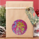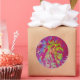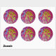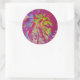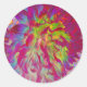 Pegatina Redonda Magenta psicodélica y flor de dalia amarilla