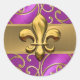 Pegatina Redonda Magenta y Gold Filigree Swirls Fleur de Lis