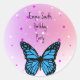 Pegatina Redonda Magical blue butterfly pink glitter art