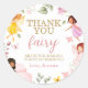 Magical Fairy Floral Birthday Gracias Por Favor Pegatina Clásico Redondo. También se puede usar en otras ocasiones como ducha de bebé, ducha de novia, etc.