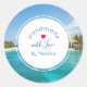 Pegatina Redonda Magnífica playa tropical azul hecha a mano con amo